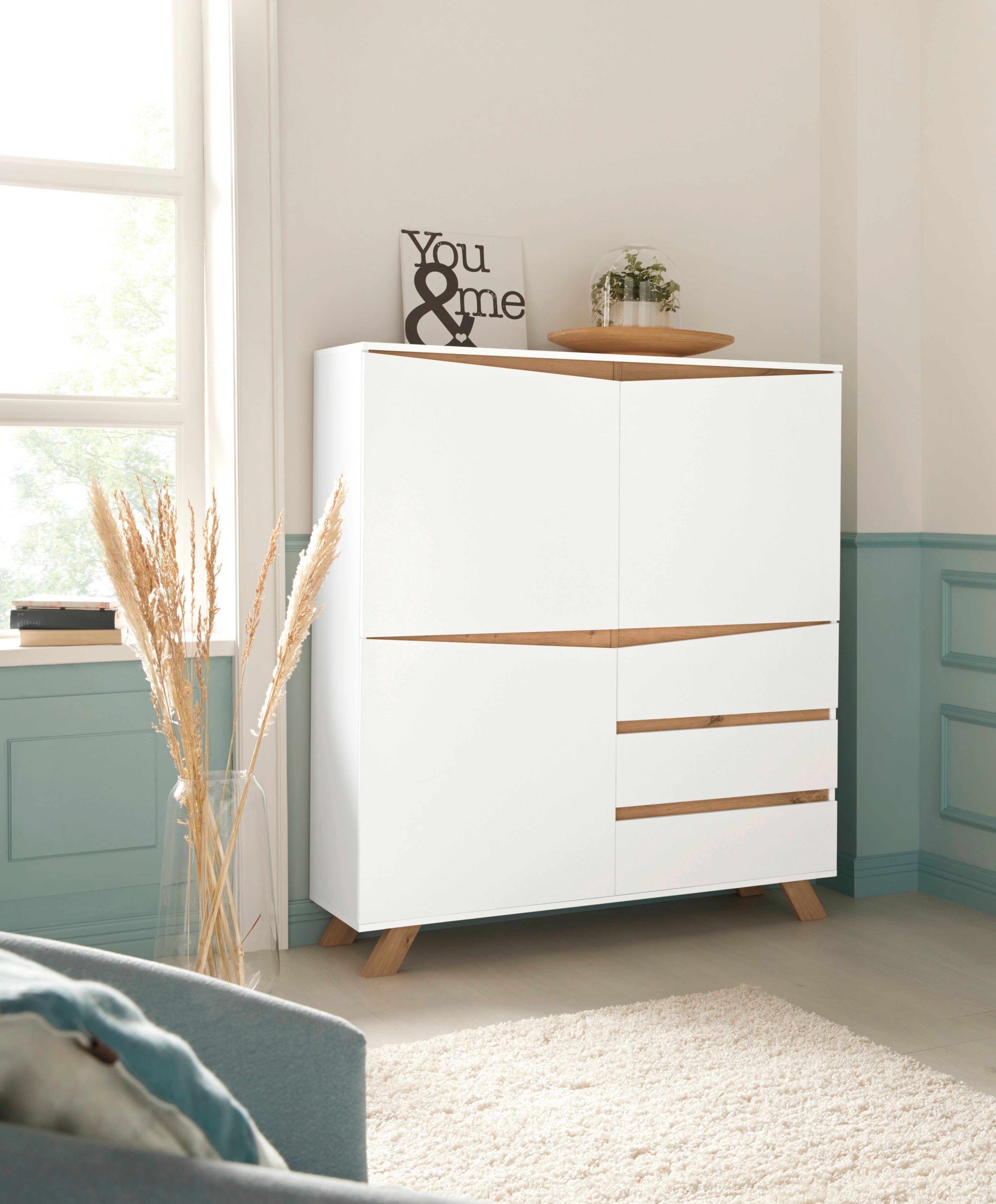 Sideboard Helge In Weiss Und Eiche Riviera Kommode Skandinavisch 160 X 83 Cm Kaufen Bei Oe Online Einrichten Gmbh - Kleine holz kommode mit 4 schubladen holzfarben weiss.